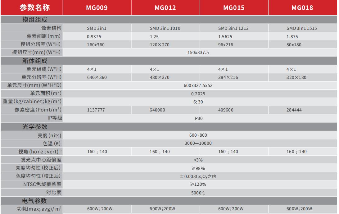 MG 系列定位于主流小間距產(chǎn)品, 600mm 寬度和 16 : 9 寬高比,具有全前維護(hù)的特性,降低了客戶使用門(mén)檻。 MG 系列采用了極簡(jiǎn)設(shè)計(jì)理念,將利亞德小間距產(chǎn)品的多年設(shè)計(jì)經(jīng)驗(yàn)濃縮成 MG 的核心性能中,在保證高質(zhì)量視頻顯示效果的同時(shí),降低了客戶總體擁有成本。外觀經(jīng)過(guò)精心設(shè)計(jì),在優(yōu)美的外形下包容了關(guān)鍵組件的同時(shí),還添加了功能檢測(cè)功能,同時(shí)保證系統(tǒng)的良好散熱。 MG 可選電源備份,標(biāo)配信號(hào)環(huán)路備份。