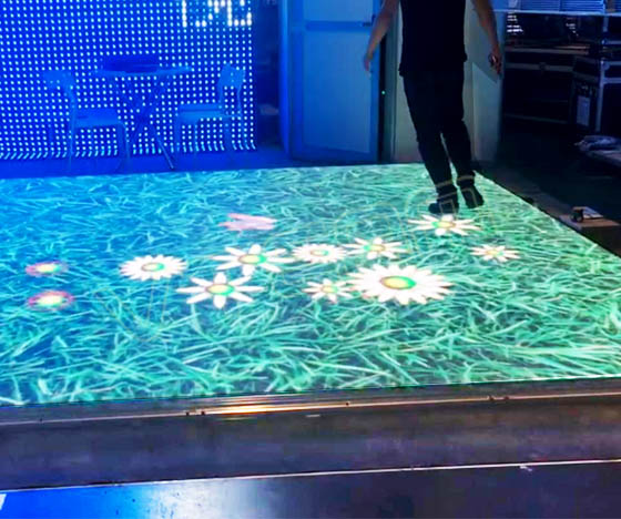 而現(xiàn)在的LED地磚屏不僅在基礎(chǔ)性能上有所進(jìn)步,還能添加了新的功能--感應(yīng)互動(dòng)?;?dòng)LED地磚屏里面裝載有壓力傳感器或電容式傳感器或紅外傳感器等設(shè)備,當(dāng)人在地磚屏上移動(dòng)時(shí),傳感器能感應(yīng)到人的位置并將觸發(fā)信息反饋給主控制器,然后主控制器邏輯判斷后輸出相應(yīng)的顯示效果。