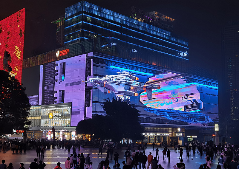 這幾年,裸眼3D顯示屏逐漸成為LED屏企的明顯產(chǎn)品,助力了很多城市地標(biāo)建筑打造網(wǎng)紅打卡地。比如大家熟悉重慶觀音橋、成都太古里等。不可否認(rèn),裸眼3D技術(shù)應(yīng)用已經(jīng)有幾十年的時間,但為何突然這幾年火起來,主要原因可能來自兩個方面,一方面是國內(nèi)文旅夜游產(chǎn)業(yè)的掀起,另外一方面LED顯示行業(yè)在商業(yè)邏輯上的升級,用戶更多注重數(shù)字內(nèi)容板塊。