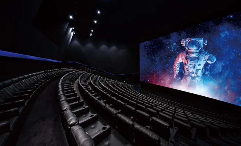 憑借技術的創(chuàng)新突破,利亞德LED 電影屏在顯示亮度、對比度、色域、超高清等技術方面優(yōu)勢顯著。首先,純黑屏幕精準還原畫面細節(jié),完美呈現(xiàn)電影創(chuàng)意表達畫面,打造前所未有的觀影沉浸感;其次,LED 電影屏正常播放時亮度僅為 48nit,灰度等級16bit,灰度與畫質更加凸顯,畫面暗部細節(jié)清晰展示。此外,DCI-P3 色域可覆蓋電影場景全部色域,色調豐富,精準呈現(xiàn)電影畫面真實色彩,提升畫面質感,帶來全新視覺體驗;無分辨率損失,高刷新率,沉漫式3D視覺效果,營造身臨其境的觀影體驗。