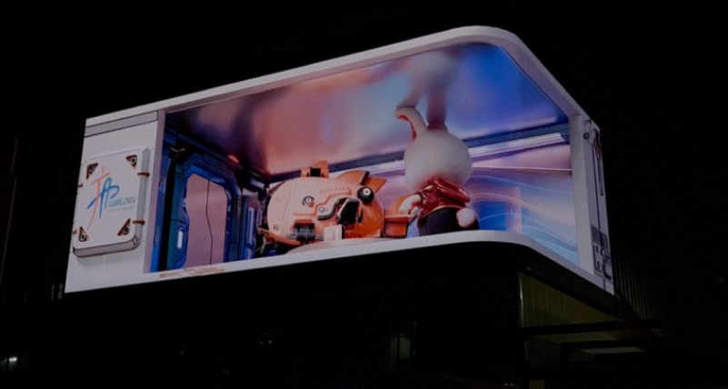 日前,由利亞德打造的廣州首個超8K戶外裸眼3d顯示屏在白云區(qū)“廣州設計之都”成功點亮!該屏幕面積約1000㎡,分辨率高達14240*4320,對比度為5000:1,搭配優(yōu)質(zhì)的創(chuàng)意內(nèi)容,呈現(xiàn)更精細、更震撼、色彩更豐富的視覺效果。大屏轉(zhuǎn)角處特別采用曲面平滑技術(shù),實現(xiàn)屏幕顯示面平滑過渡,無縫、無割裂,視覺容錯無色差,完美呈現(xiàn)3D造型。