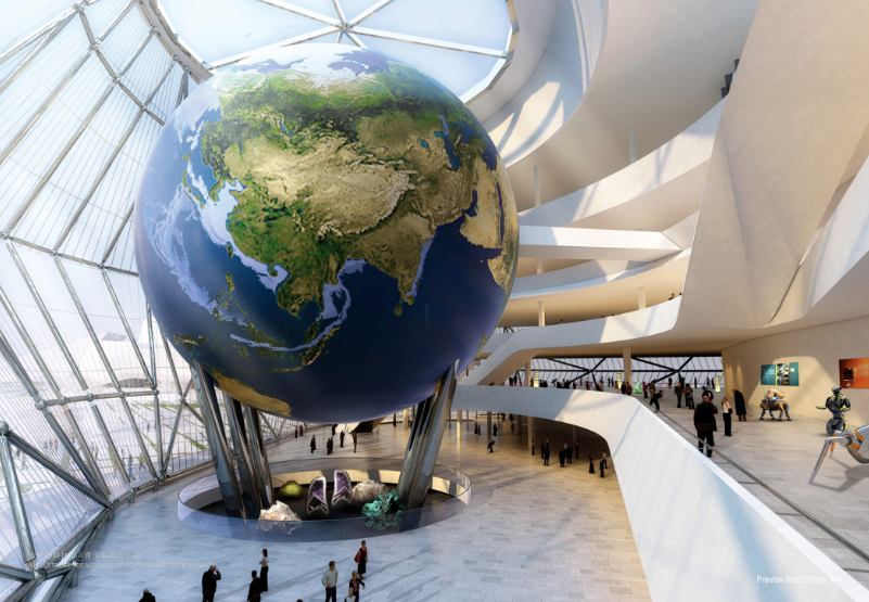 而球幕影院外殼作為科技館展示亮點,可實時動態(tài)播放科普影片,呈現(xiàn)定制影片裸眼3D效果,全面、生動展示江淮大地的自然生態(tài)景觀,以及科技發(fā)展歷史。