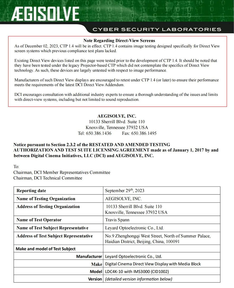 11月3日,利亞德又一款LED電影屏(4K 10米)通過DCI權(quán)威認(rèn)證。至此,利亞德已有四款擁有自主知識(shí)產(chǎn)權(quán)的LED電影屏通過DCI認(rèn)證。深耕顯示領(lǐng)域近30載,利亞德依托自研、合作開發(fā)等多種方式,已成為目前行業(yè)內(nèi)通過DCI認(rèn)證最多、LED電影屏型號(hào)最全的企業(yè)。集團(tuán)以強(qiáng)大的科技創(chuàng)新能力,持續(xù)探索LED電影屏在影院市場(chǎng)的應(yīng)用,推動(dòng)電影產(chǎn)業(yè)數(shù)字化、智能化創(chuàng)新發(fā)展。