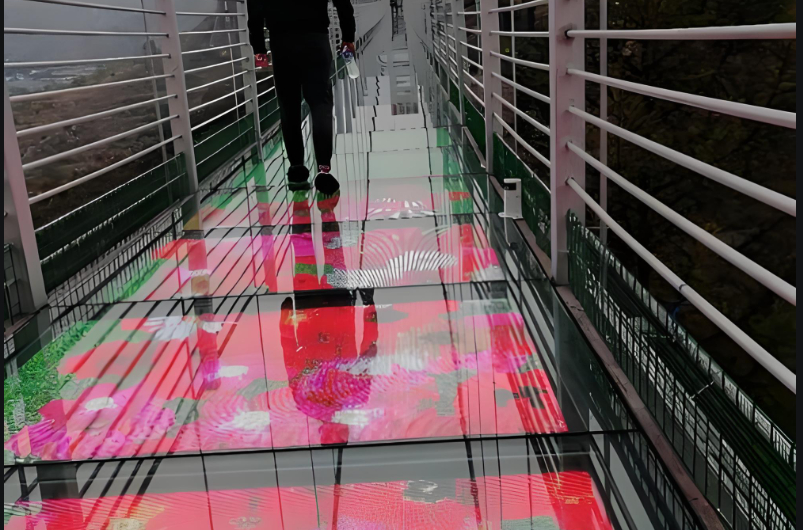 在玻璃棧道這一特殊載體上,LED顯示屏的應(yīng)用已突破傳統(tǒng)信息展示的范疇,向沉浸式體驗(yàn)和功能服務(wù)集成延伸。其落地場(chǎng)景主要聚焦在四大方向: