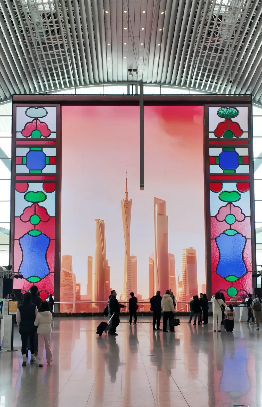 《廣州之窗》將巨幕巧妙轉(zhuǎn)化為一扇巨大的、充滿呼吸感的動態(tài)滿洲窗,從朝陽下的城市天際線到綴滿木棉花的紀(jì)念堂,讓旅客透過屏幕讀懂廣州的歷史底蘊與現(xiàn)代活力。